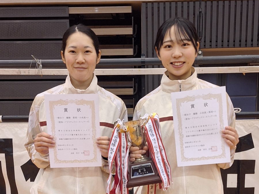 2026.02.07 【結果】第62回全日本浜松インドアソフトテニス選手権大会 2026.02.01 【結果】日韓スポーツ交流・成人交歓交流ソフトテニス静岡県予選大会 2026.02.01 【報告】2026年度理事会(総会) <2025年度事業報告><2025年度大会記録><2025年度表彰者><2025年度ランキング> <2026年度事業計画><議事録(差替済)> 2026.01.21 【案内】第33回関東オープンソフトテニス大会<要項> ※申込期間2/1~2/20 2026.01.16 【結果】第43回東海小学生インドアソフトテニス選手権大会県予選
