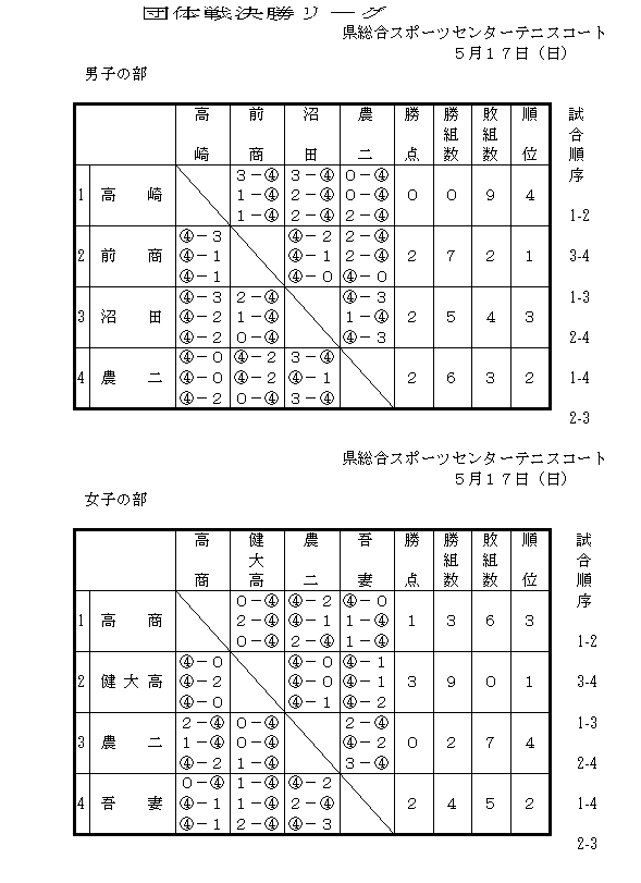 優勝:健大高崎 2位:吾 妻 3位:高 商 4位:農 二 |